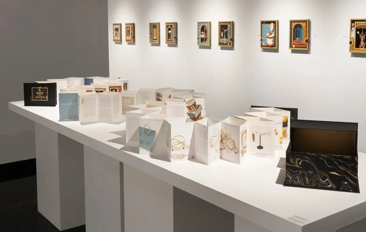 ABOVE: Handmade book with accordion folds, by Nancy Bockbrader, combining the artworks, essays and scientific instruments.